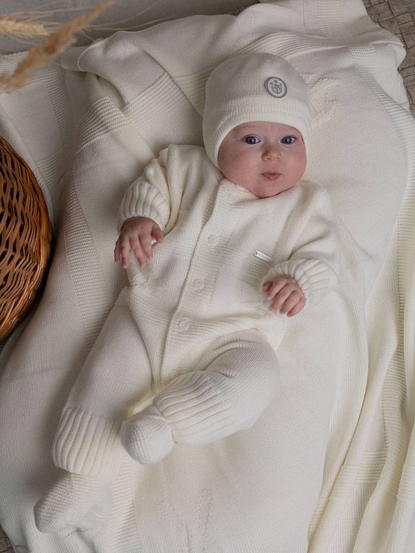 Комплект НаследникЪ Выжанова Бренд комбинезон и шапка НВ-МТ-039 ЧЗ экрю 62