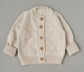Вязаный комплект одежды для малышей можно использовать в качестве самостоятельной верхней одежды летом при температуре ~ от +20С до +7С. В комплекте 4 предмета: кофта на пуговицах, штанишки с открытыми ножками, шапочка на завязках и носочки. Все изделия выполнены из шерсти мериноса с добавлением пАН и хлопка.