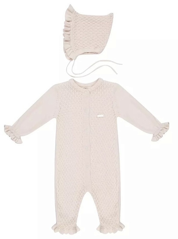 Комбинезон связанный из мягкой экологичной хлопковой пряжи премиум качества, продается в комплекте с детской шапочкой. Модель свободного прямого силуэта с застежкой на кнопках спереди, легко и быстро одевается и снимается, ажурная шапочка в тон комбинезону, также входит в комплект. Легкий хлопковый материал изделия позволяет коже малыша дышать. Подходит для летних прогулок, а также для повседневной носки. Нежная и милая расцветка, воздушный узор вязки, отличное решение для покупки. Состав: 100% Хлопок