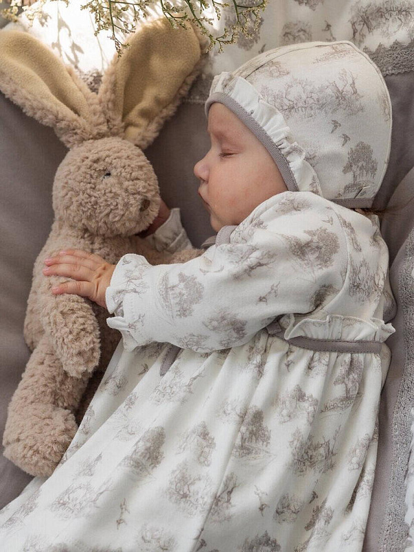 Комплект одежды для девочки состоит из штанишек, туники и чепчика. Комплект из мягкого экологичного хлопкового трикотажа, модель свободного силуэта с застежкой на кнопки спереди, легко и быстро одевается и снимается. Материал изделия позволяет коже малышки дышать. Подходит для летних прогулок, а также для повседневной носки.