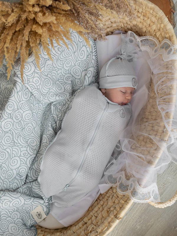 Комплект пелёнка-кокон с шапочкой НаследникЪ Выжанова Серо-голубой 01038-11004 ЧЗ 56Нет оценокХарактеристики