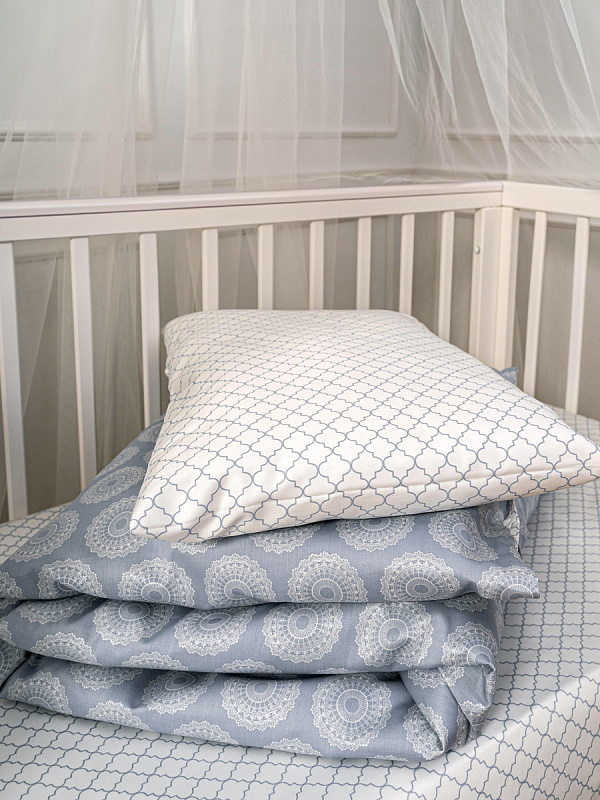 Комплект постельного белья Lappetti Медальоны 3 предмета голубой