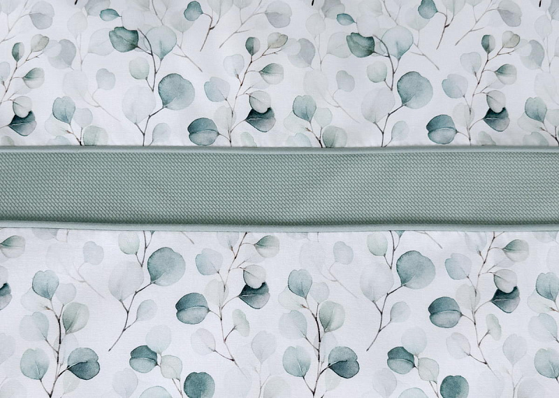 Лицевая сторона — с принтом и вставкой из мятного вельвета, как у бампера. По краю — однотонный кант мятного цвета