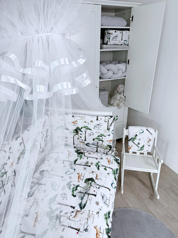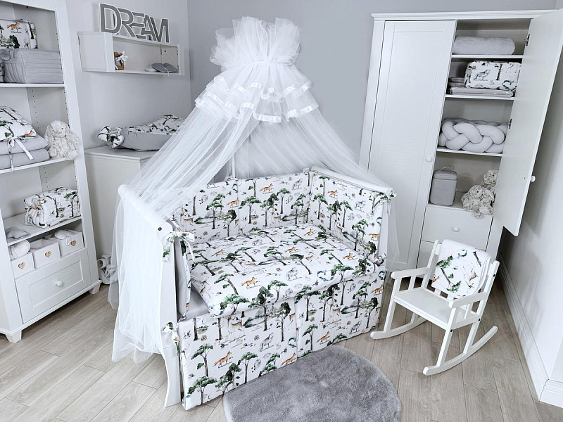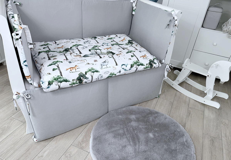 В комплектеПростыня на резинке, Подушка, Одеяло, Наволочка, Пододеяльник, Бортик (бампер)