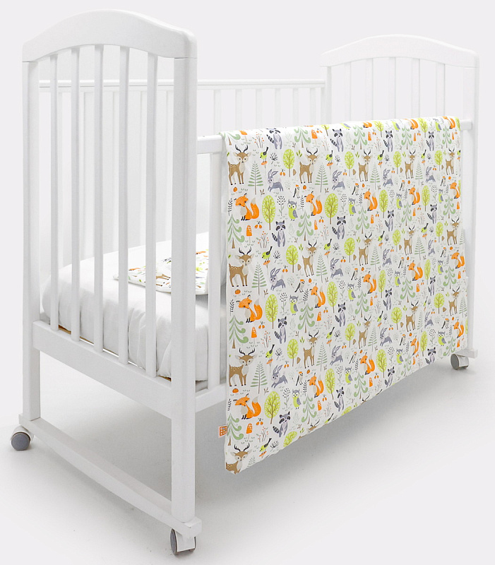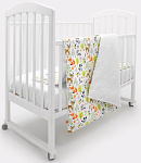 дизайнерский принт в виде зверят, птичек и растений украшает наволочку и лицевую сторону пододеяльника