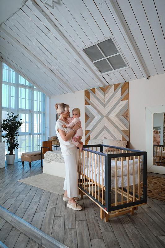 лаконичный комплект хорошо вписывается в интерьер как детской комнаты, так и родительской спальни