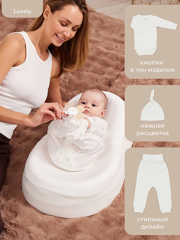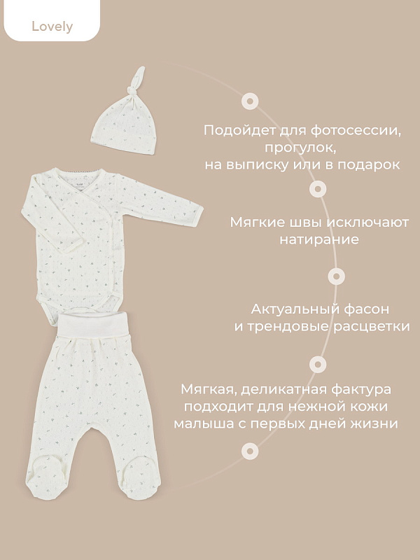 Комплект Rant Lovely №3, 3 предм (боди дл рукав, штанишки, шапочка с узл) 3-91 Milk 62Нет оценокХарактеристики