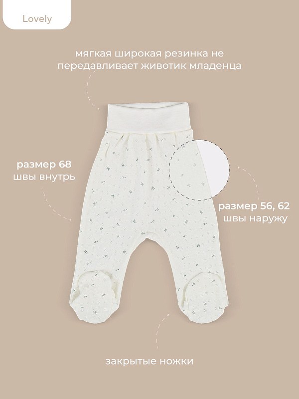 Обращаем ваше внимание: размеры 56 и 62 идут с антицарапками и швами наружу; размеры 56, 62, 68 выполнены с закрытой ножкой.