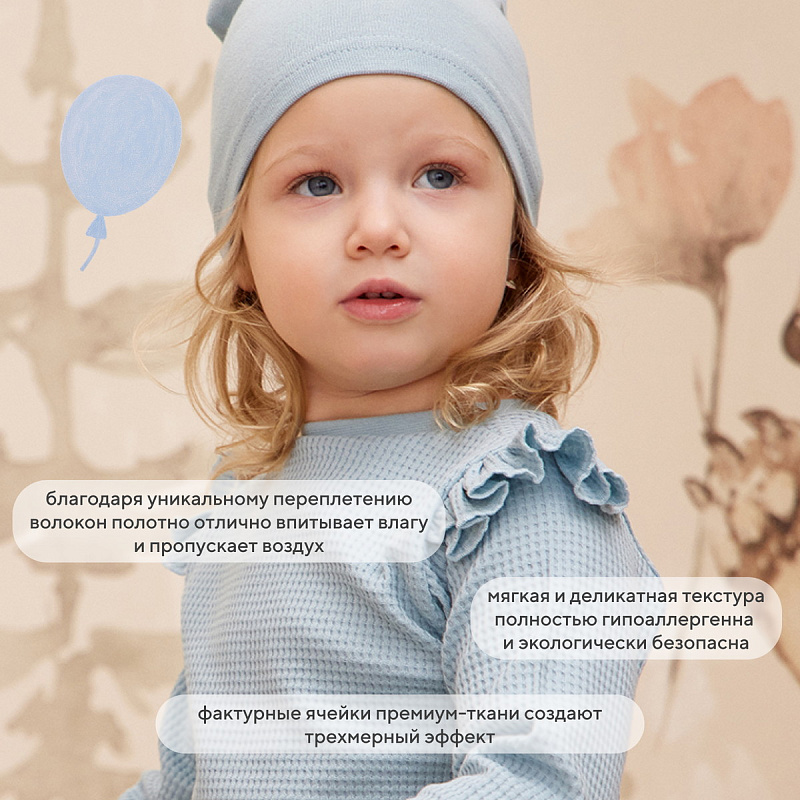 Эксклюзивная коллекция WAFFY буквально соткана из заботы и наполнена бесконечной любовью к нашим маленьким клиентам. Деликатные спокойные расцветки, натуральные ткани премиум-класса (фактурный вафельный трикотаж), качественная фурнитура, комфортное лекало, лаконичное исполнение, сочетающиеся между собой изделия - визитная карточка нашей одежды для малышей.