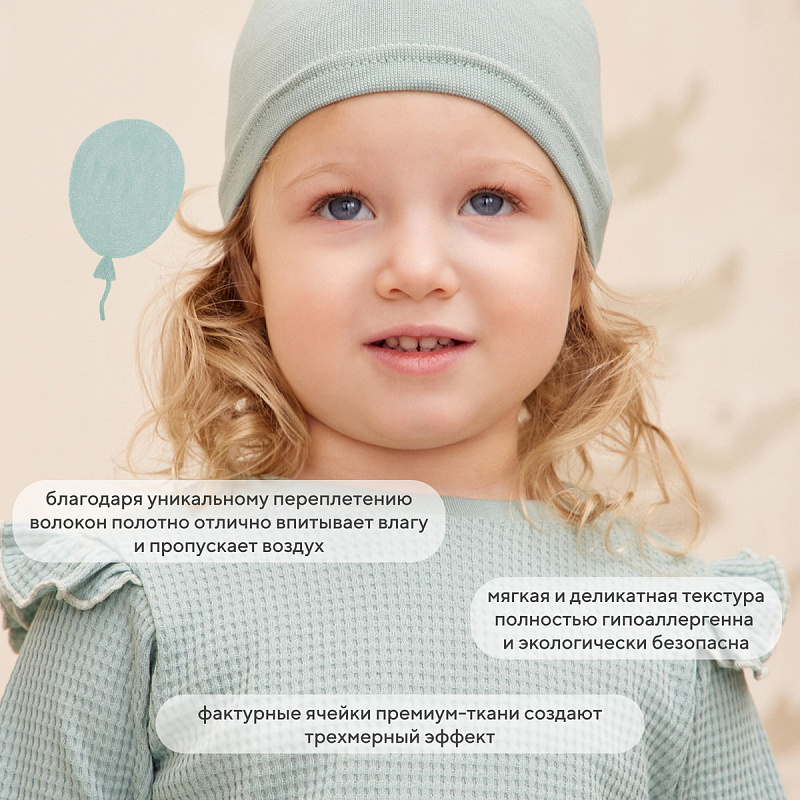Комплект Rant Waffy для девочки лонгслив,штанишки,шапочка 2-92 Mint 80