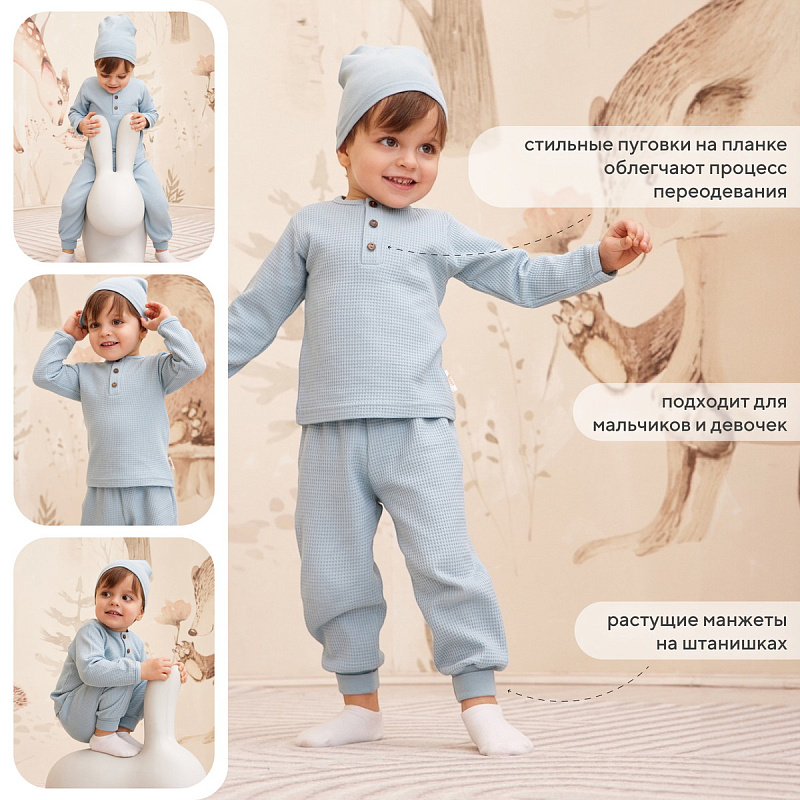 Комплект Rant Waffy лонгслив,штанишки,шапочка 1-92 Blue 74