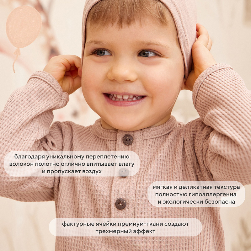 Эксклюзивная коллекция WAFFY буквально соткана из заботы и наполнена бесконечной любовью к нашим маленьким клиентам. Деликатные спокойные расцветки, натуральные ткани премиум-класса (фактурный вафельный трикотаж), качественная фурнитура, комфортное лекало, лаконичное исполнение, сочетающиеся между собой изделия - визитная карточка нашей одежды для малышей.