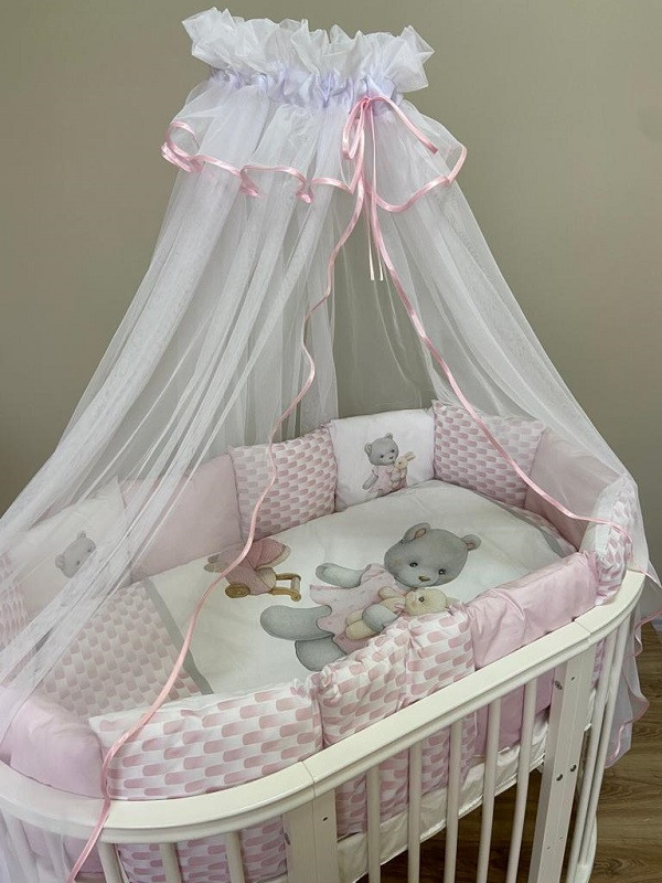 Комплект в детскую кроватку Lappetti Ева для овальной и прямоугольной кроватки 6 предметов Розовый