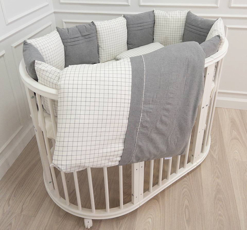 В комплектеПростыня, Подушка, Одеяло, Наволочка, Пододеяльник, Бортик (бампер)