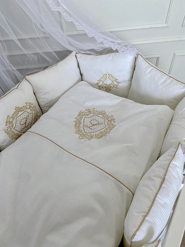 - Бортик из 12 подушечек, 30*30 см, съемные чехлы что делает уход за ним очень простым и удобным. Наполнитель подушечек зашит в дополнительный внутренний чехол и не нуждается в регулярной стирке.