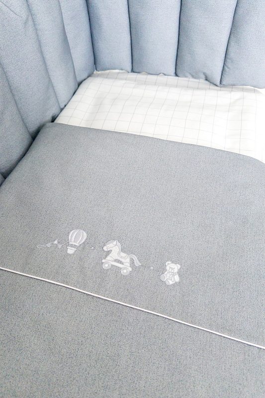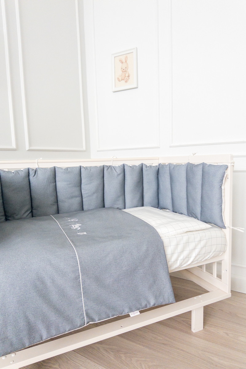 В комплектеПростыня на резинке, Подушка, Одеяло, Наволочка, Пододеяльник, Бортик (бампер)