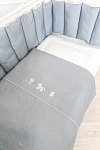 Стеганые бортики, выполненные из четырех частей общей длиной 360 см и высотой 44 см, надежно защитят вашего ребенка от случайных ударов о стенки кроватки, а также создадут ощущение защищенности и уединенности. Дизайн бортиков двухсторонний, что позволяет менять их расположение и создавать новый образ спального места.