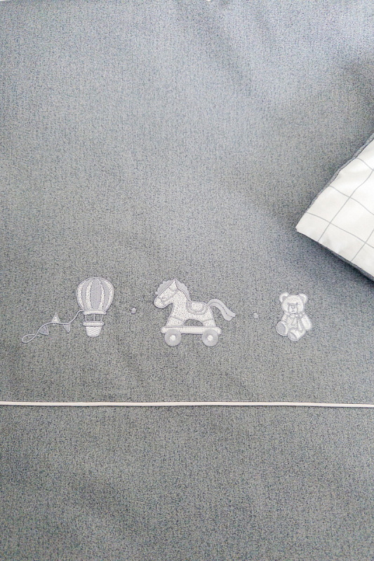 Комплект в кровать Lappetti Любимые игрушки универсальный,стеганые бортики 6 пр. 6167 05 серый,клетка