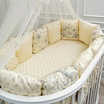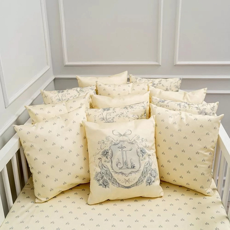 Наполнитель из холлкона делает кровать мягкой и удобной, обеспечивая долгий и спокойный сон. Бортик состоит из 12 подушек размером 30*30 см и оснащен съемными чехлами, что облегчает их уход и чистку.