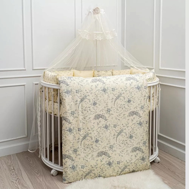 Комплект в кровать Lappetti "Райский сад" предназначен для овальной и прямоугольной кроваток и включает в себя 6 предметов. Изготовленный из премиального сатина, комплект выполнен из 100% хлопка, что обеспечивает комфорт и приятные тактильные ощущения.