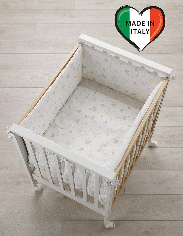 - трехсторонний бампер, защитит ребенка от ударов о стенки кроватки,