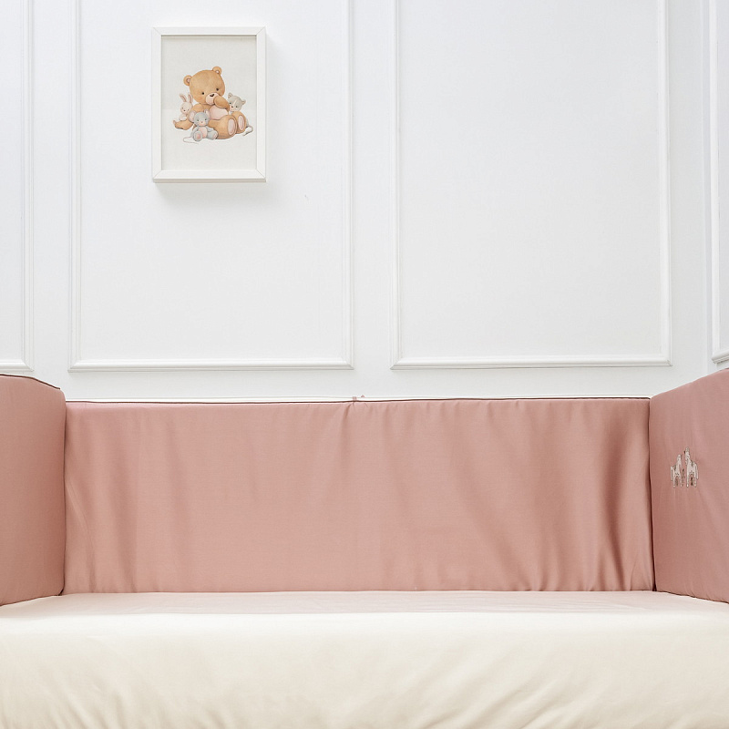 Защитный бортик, состоящий из 4 частей (44х360 см) с двухсторонней расцветкой и съемными чехлами, станет надежной крепостью и уютным гнездышком для вашего сокровища.