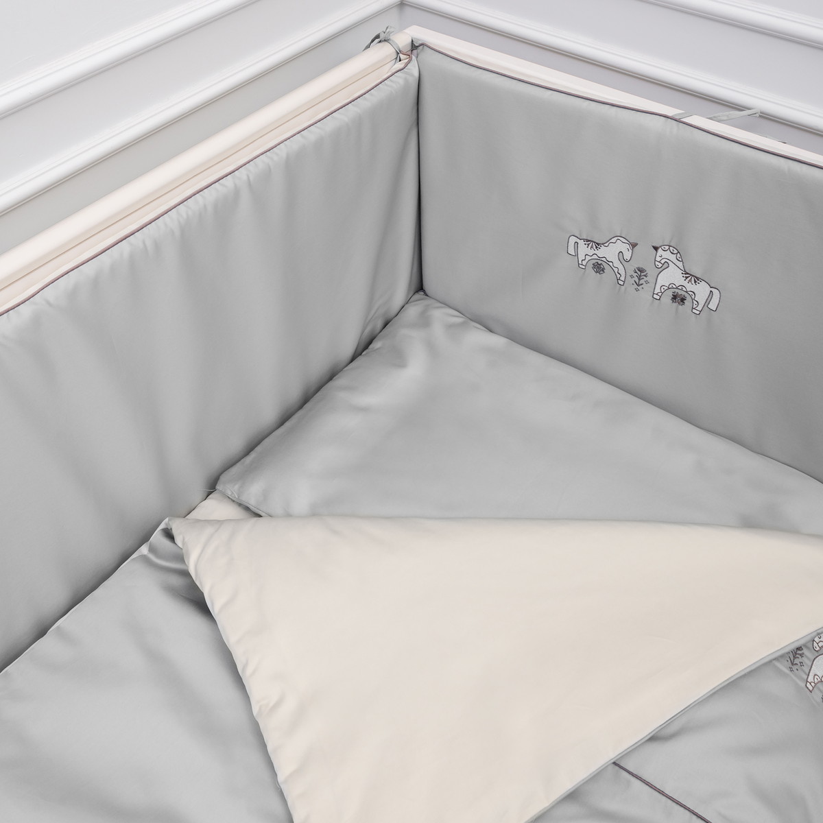 Комплект в кроватку Lappetti Коники-сны для прямоугольной кроватки 6 предметов 6149/5 серый