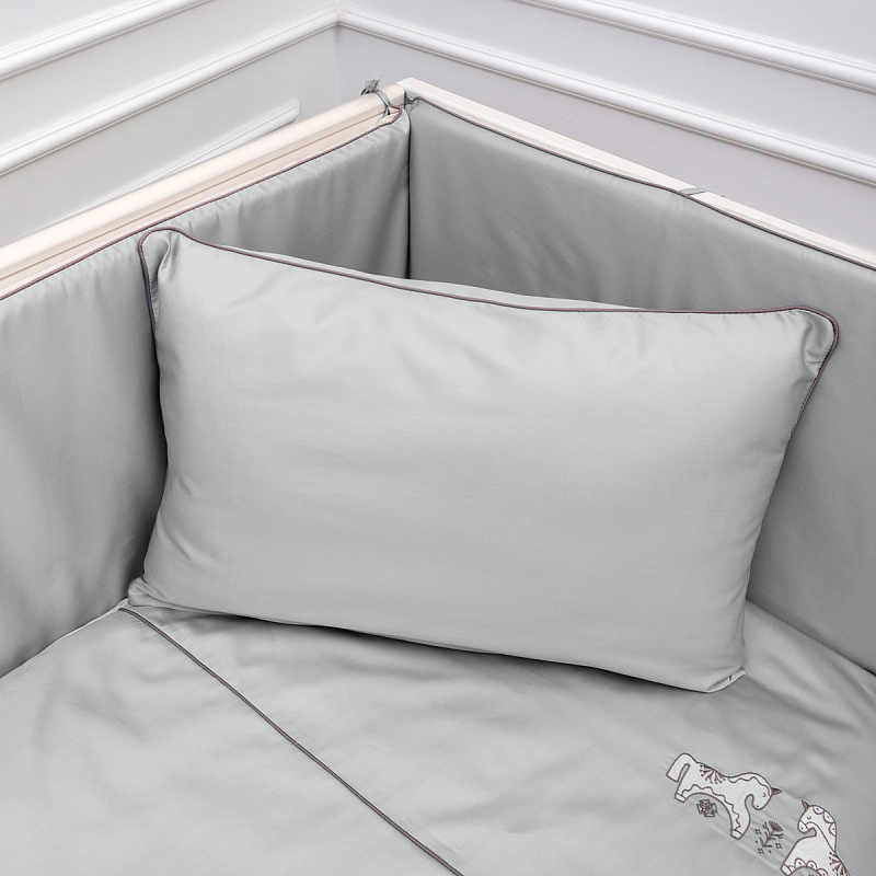 В комплектеПростыня на резинке, Подушка, Одеяло, Наволочка, Пододеяльник, Бортик (бампер)