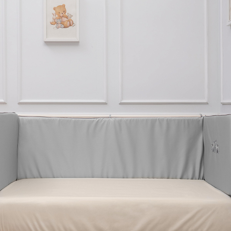 Защитный бортик, состоящий из 4 частей (44х360 см) с двухсторонней расцветкой и съемными чехлами, станет надежной крепостью и уютным гнездышком для вашего сокровища.