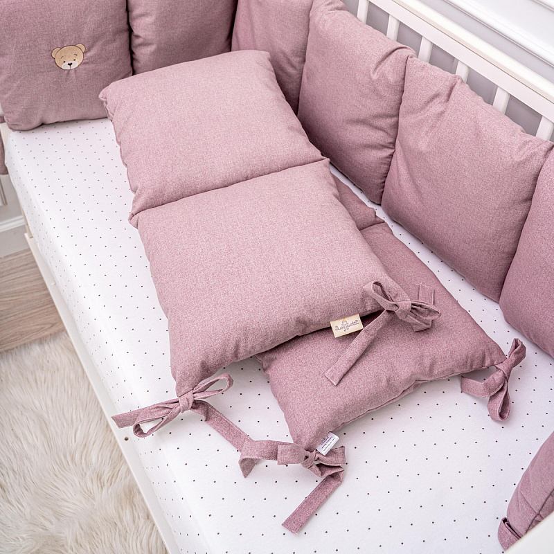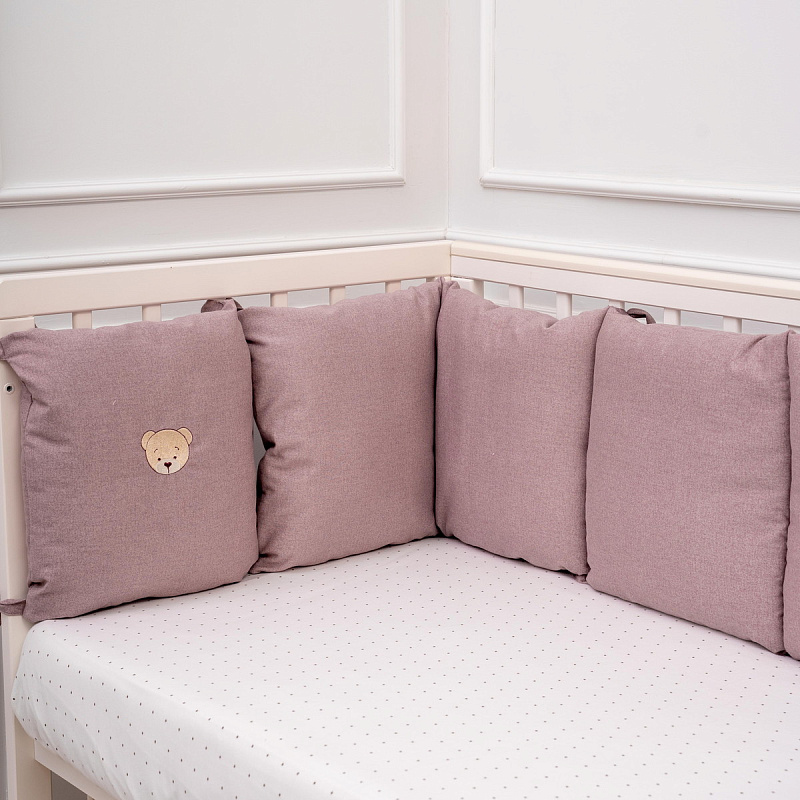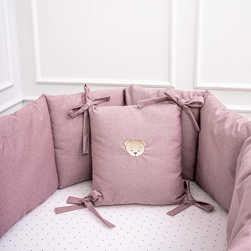 Украшение: Подушечка-бортик украшена декоративной аппликацией "Мишка".