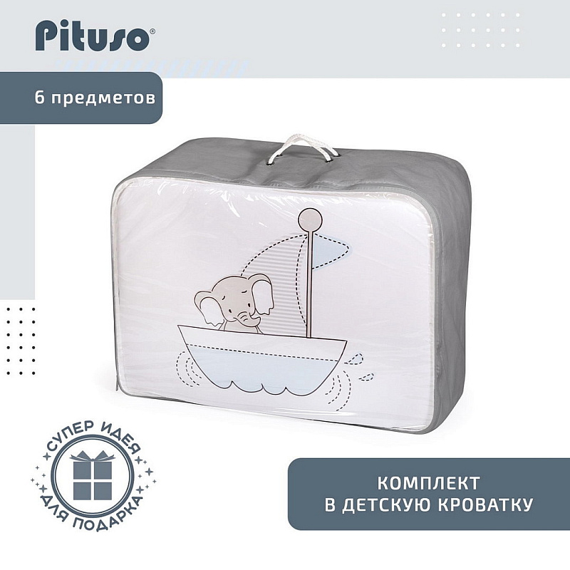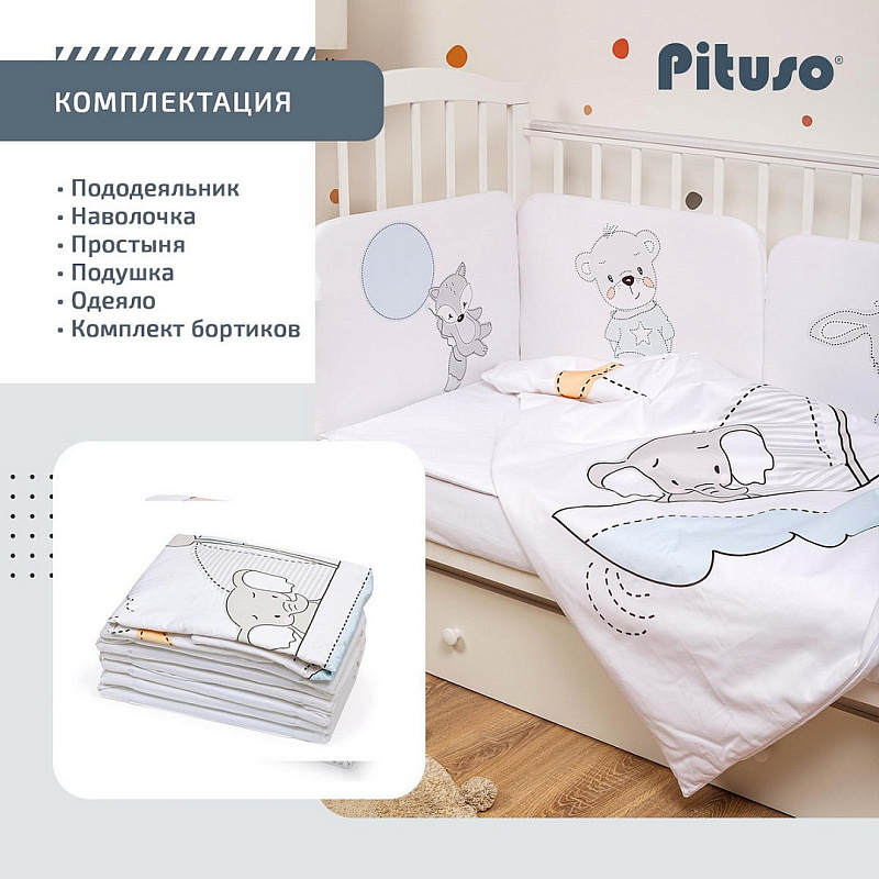 Комплект детского постельного белья в кроватку 120*60 см, 6 предметов торговой марки PITUSO, универсальный.