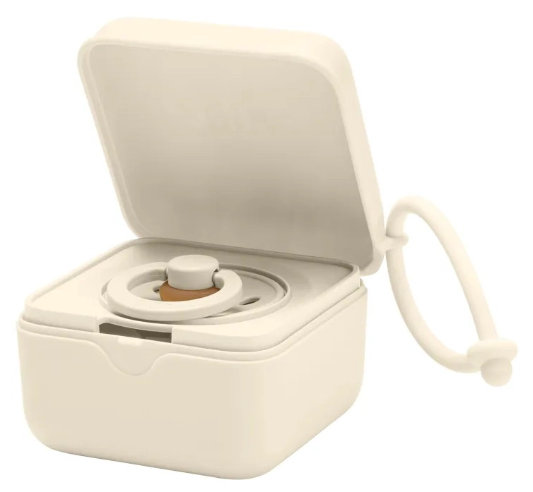 Аксессуар стильно смотрится на сумке или коляске. Контейнер поставляется со специальной съёмной вставкой, с помощью которой можно закрепить внутри одну пустышку BIBS любой формы. Без вставки контейнер вместит уже три пустышки BIBS или одну пустышку с держателем.