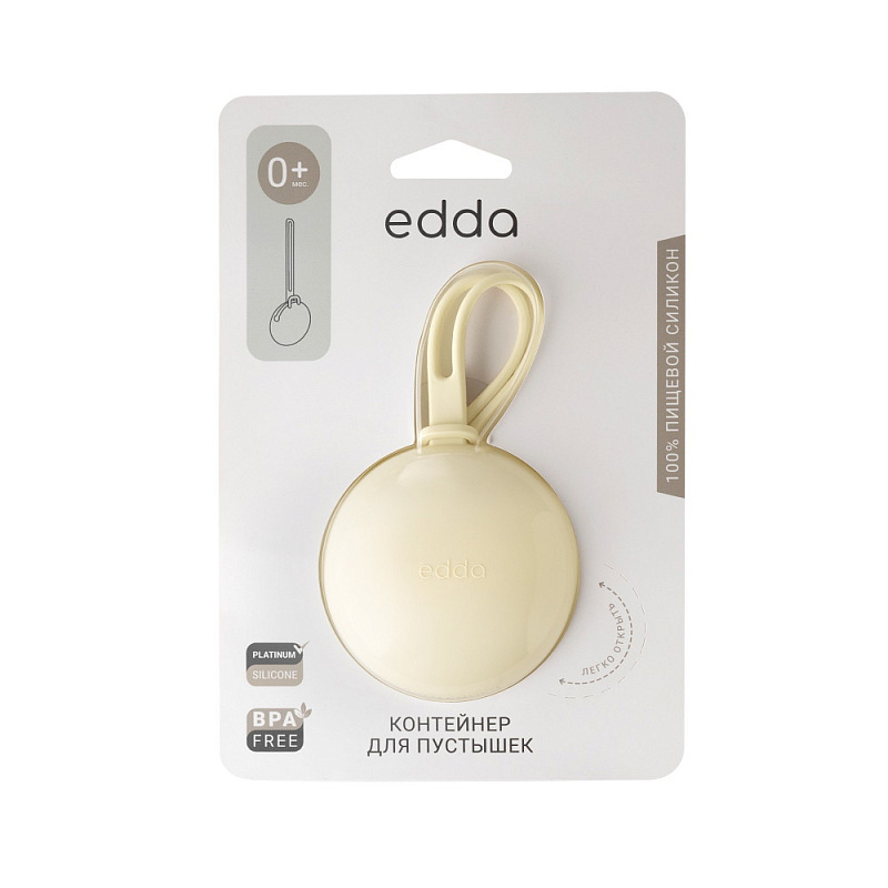 Контейнер для пустышки edda — маленький ритуал чистоты и порядка, который всегда с вами: дома, на прогулке и в дороге. Мягкий премиальный 100% пищевой платиновый силикон (BPA-free) бережно хранит до двух пустышек, защищая их от загрязнений, а кармашек с фиксатором надёжно закрывается и предотвращает выпадение.