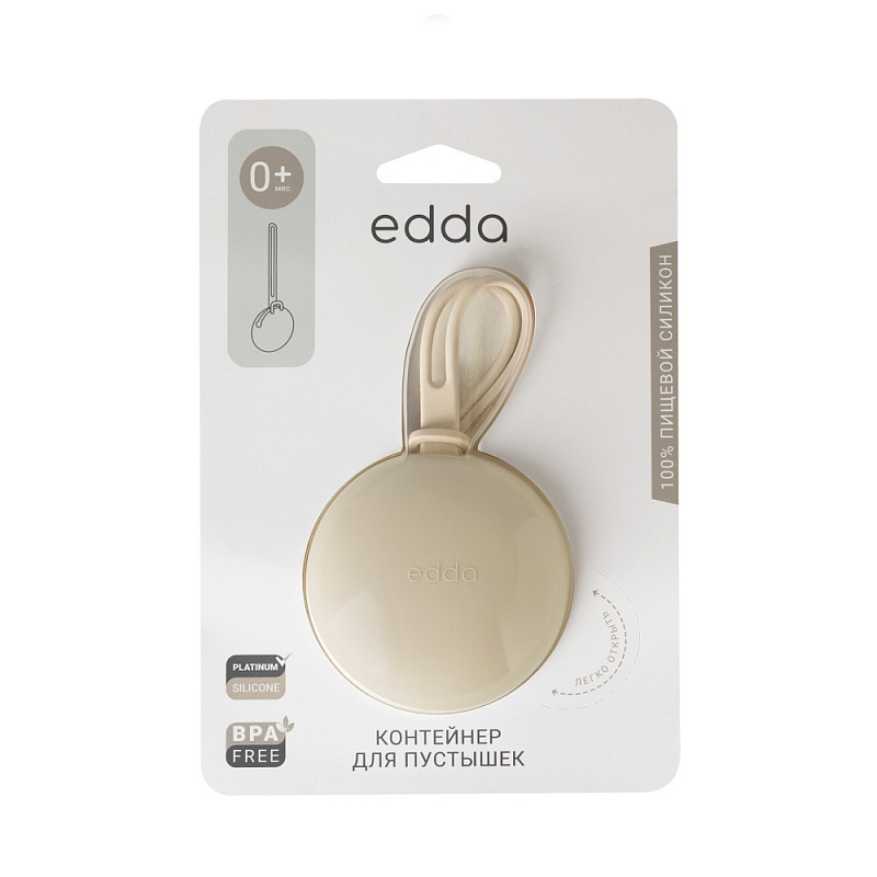 Контейнер для пустышки edda — маленький ритуал чистоты и порядка, который всегда с вами: дома, на прогулке и в дороге. Мягкий премиальный 100% пищевой платиновый силикон (BPA-free) бережно хранит до двух пустышек, защищая их от загрязнений, а кармашек с фиксатором надёжно закрывается и предотвращает выпадение.