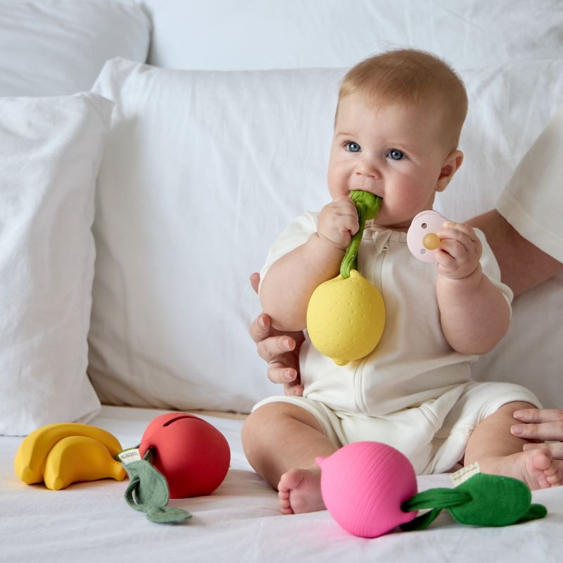 Сочные новинки — многофункциональные каучуковые контейнеры для пустышек Oli&Carol! «Фрукты и овощи» выполнены из 100% натурального каучука, полученного из сока дерева гевеи. Сперва это — оригинальный «домик» для пустышки. А когда малыш подрастет, будет хранить в нём заколочки, машинки и разные «секретики». Родители смогут использовать контейнер в качестве снэк-бокса и складывать в него кусочки яблока, печеньки, орешки.
