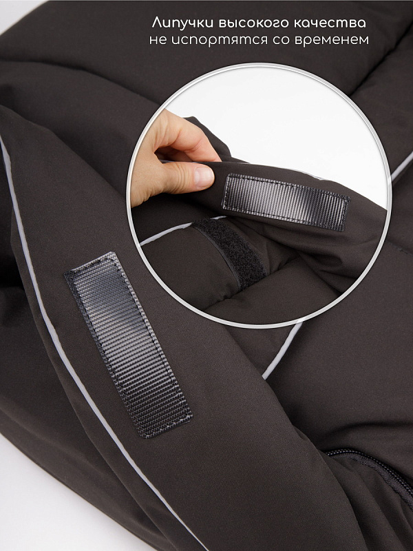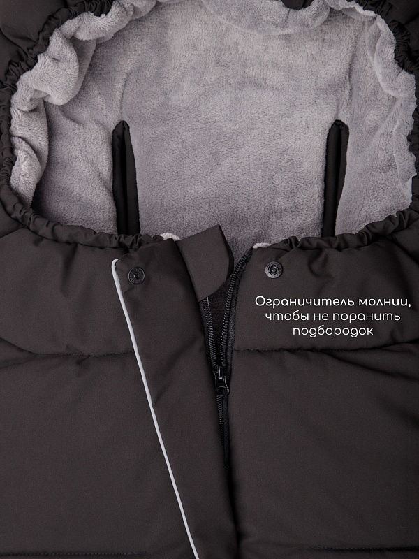 Для максимальной защиты от стужи капюшон легко утягивается, превращая конверт в уютное гнездышко.