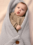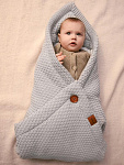 Петельки мягкой гипоаллергенной пряжи дружно обнимают малыша, дополняя хлопковую подкладку конверта. Нежные материалы обеспечивают приятную тактильность, не натирают и не травмируют чувствительную кожу новорожденного.