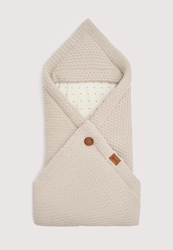 Петельки мягкой гипоаллергенной пряжи дружно обнимают малыша, дополняя хлопковую подкладку конверта. Нежные материалы обеспечивают приятную тактильность, не натирают и не травмируют чувствительную кожу новорожденного.