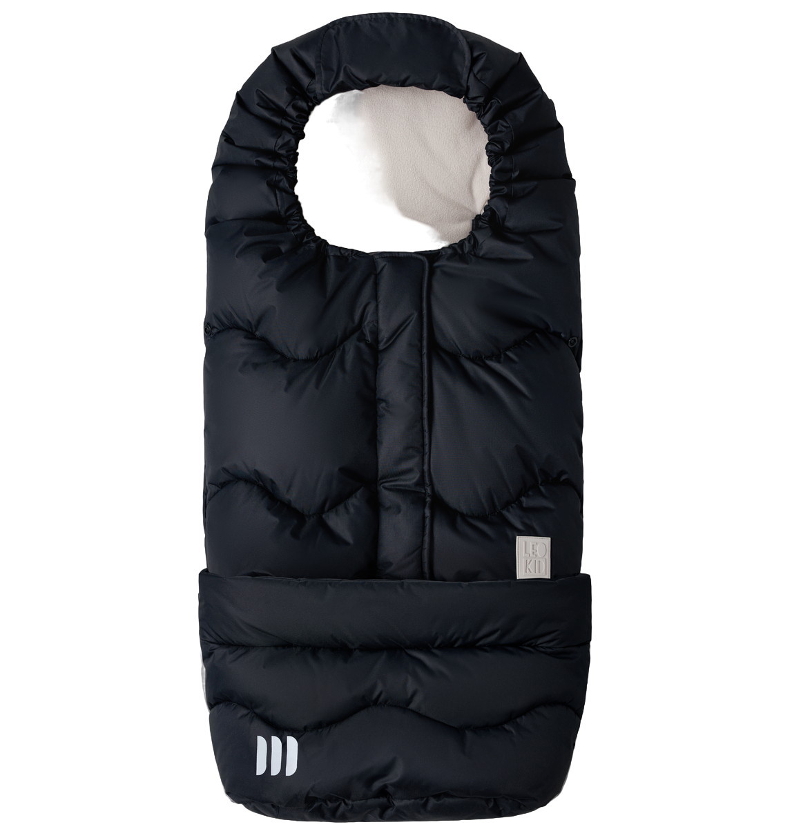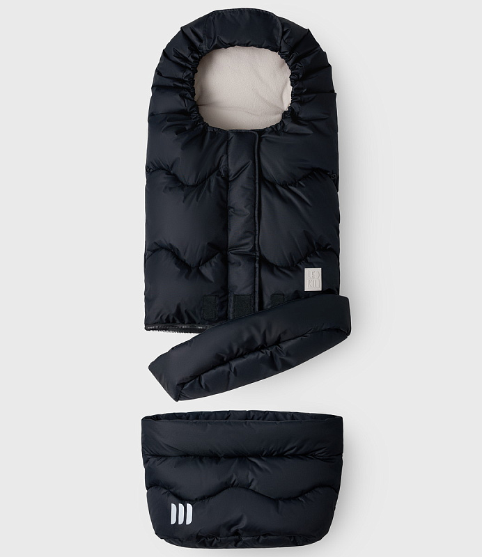- утяжка капюшона с помощью регулируемого шнурка и защита от задувания на прорезях и молниях надежно сохраняют тепло внутри конверта