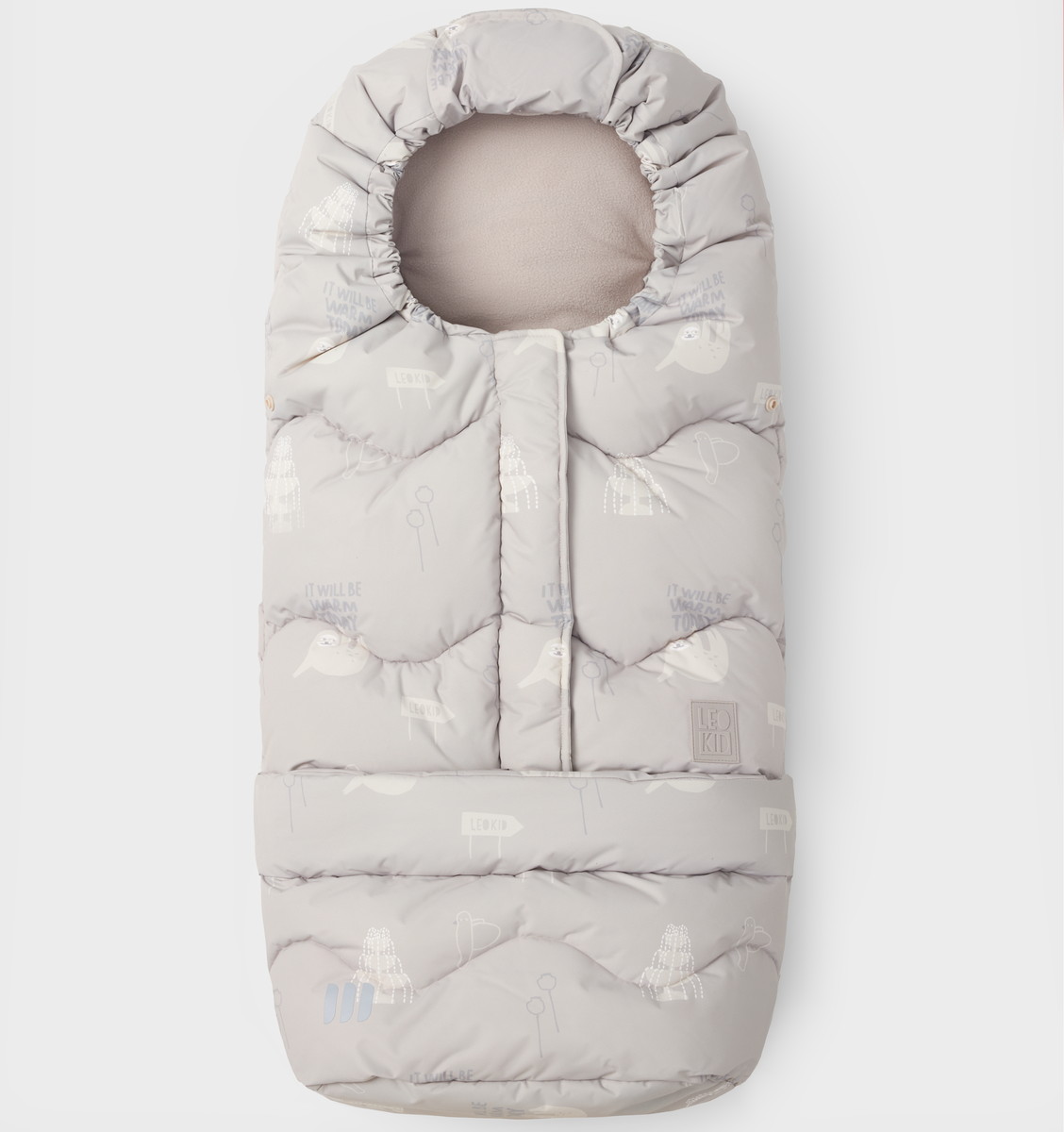 - утяжка капюшона с помощью регулируемого шнурка и защита от задувания на прорезях и молниях надежно сохраняют тепло внутри конверта