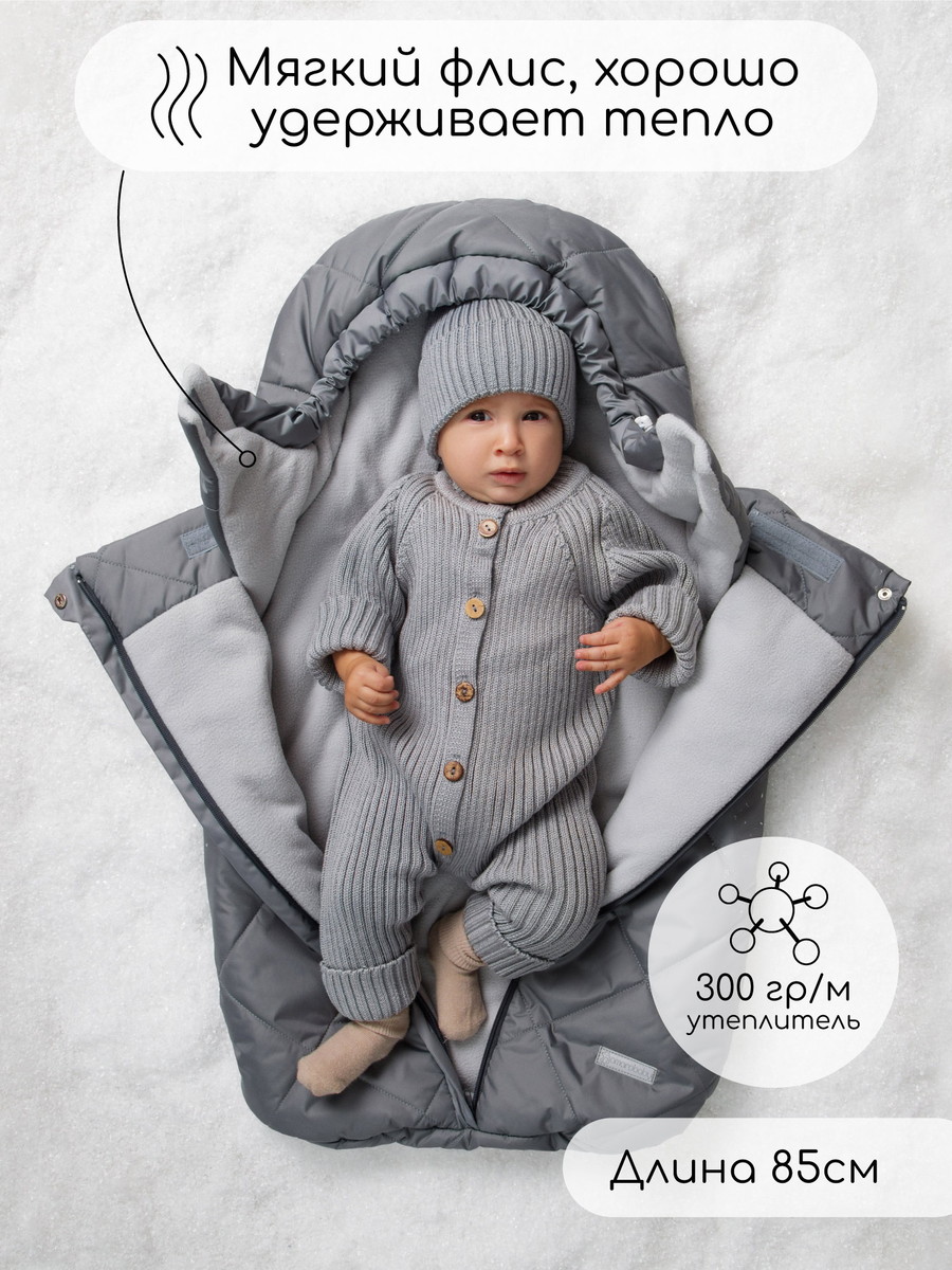 Материал мягкий, дышащий, сохраняет тепло без парникового эффекта. Температурный режим стеганого конверта до -30C. Детский зимний конверт обеспечивает максимальный комфорт на протяжении длительного времени. Одним из главных преимуществ детского стеганого зимнего конверта является молния, именно благодаря ей процесс надевания и снятия конверта максимально быстрый. Верх конверта утягивается и превращается в капюшон, который плотно прилегает к голове ребенка и спасает его от ветра. Длинна конверта с капюшоном 85см. Конверт детский отлично подойдет, как на выписку, так и для ежедневных прогулок. Универсальные цвета подойдут, как для мальчика, так и для девочки. Конверт на выписку новорожденного подойдет на любую коляску, санки, люльку или автолюльку. Удобство, функциональность и стильный дизайн делают его идеальным выбором для родителей, заботящихся о комфорте и безопасности своего малыша. Позаботьтесь о тепле и уюте вашего ребенка с помощью детского стеганого зимнего конверта!
