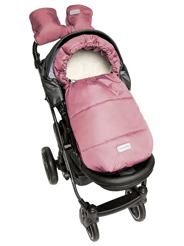 Конверт рассчитан на холода до -25 °С и состоит из трех защитных слоев: непромокаемого верха, плотного утеплителя и подкладки из меха с натуральной шерстью.