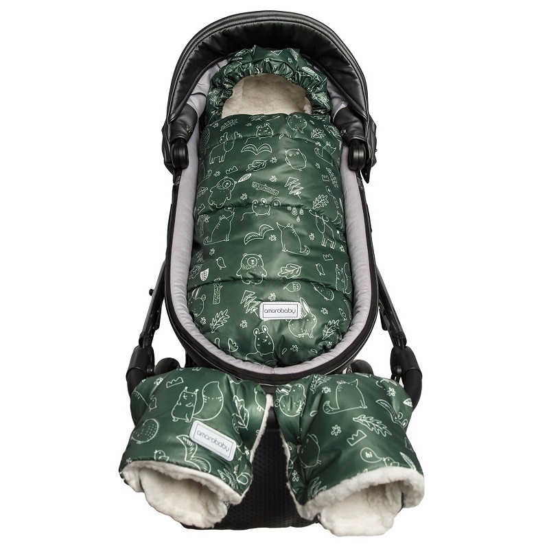 Конверт меховой AmaroBaby Snowy Travel 85 см зверята хаки