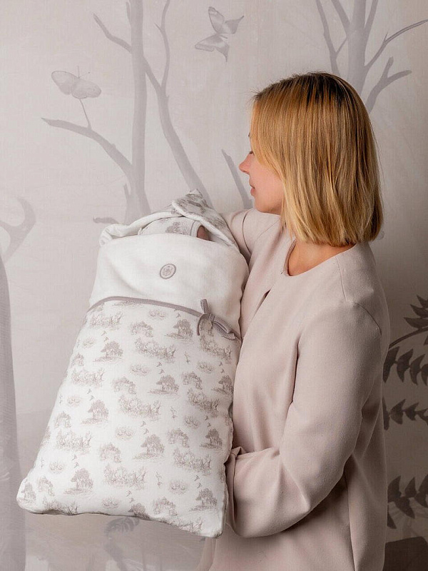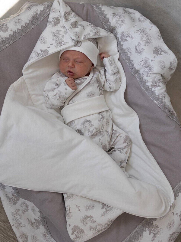 Изысканный конверт на выписку — торжественный «первый наряд» для новорождённого, сочетающий классические традиции и утончённую эстетику. Модель создана для тех, кто ценит благородную сдержанность и хочет запечатлеть момент появления малыша в особенной атмосфере достоинства и тепла.