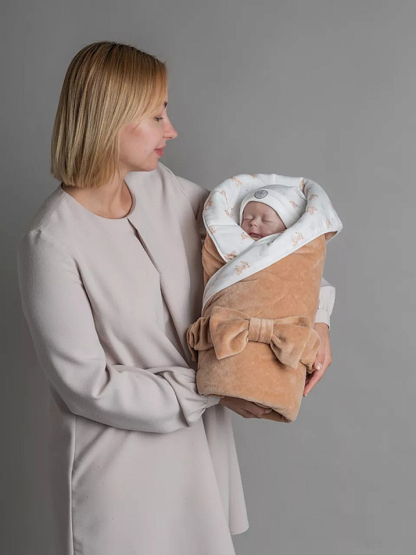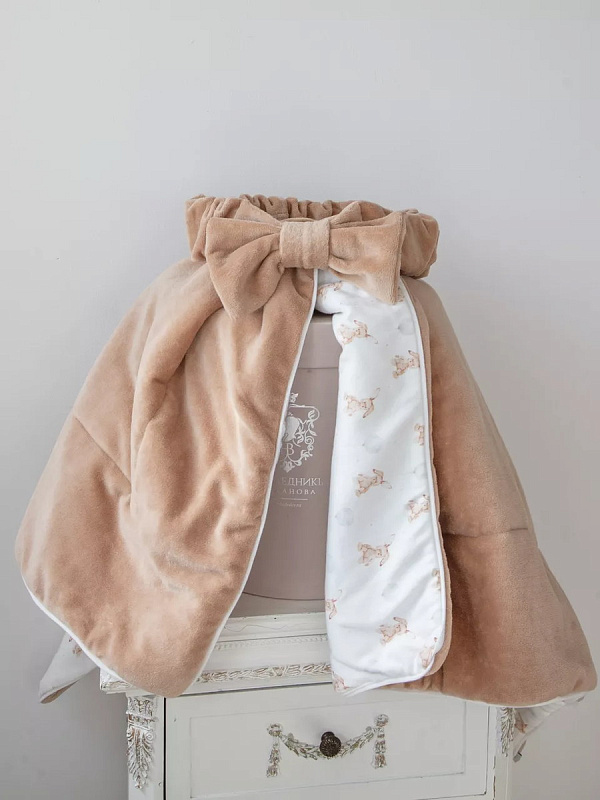 Плед-конверт из мягкого верюра. Это то ,что нужно Вам и Вашему ребенку! Он подарит малышу максимум комфорта! Ведь он такой же нежный, как мамины любимые ручки. Наш плед это замечательный вариант на выписку из роддома, ведь дополняет его красивый и универсальный бант на резинке. Удобный и стильный плед для прогулок на свежем воздухе, превосходный и практичный подарок малышу, да и вообще, плед для новорожденных просто необходим! Он понадобится, как одеяло для укрывания во время сна в кроватке или в коляске на улице.
