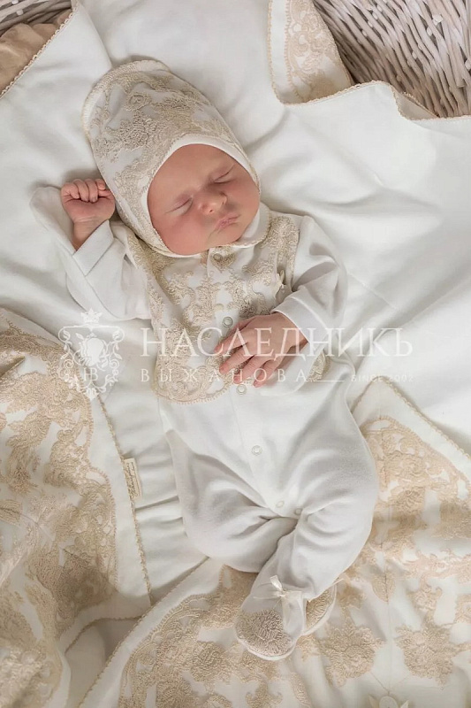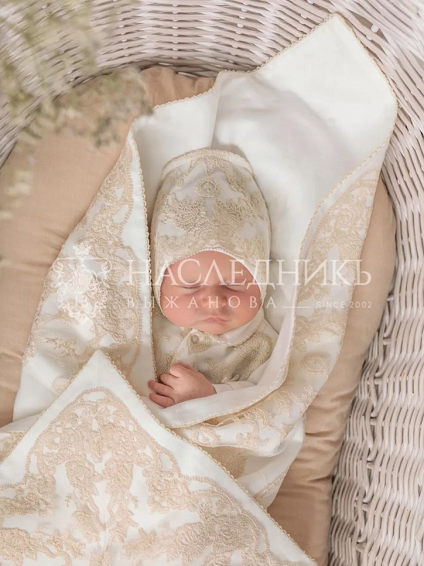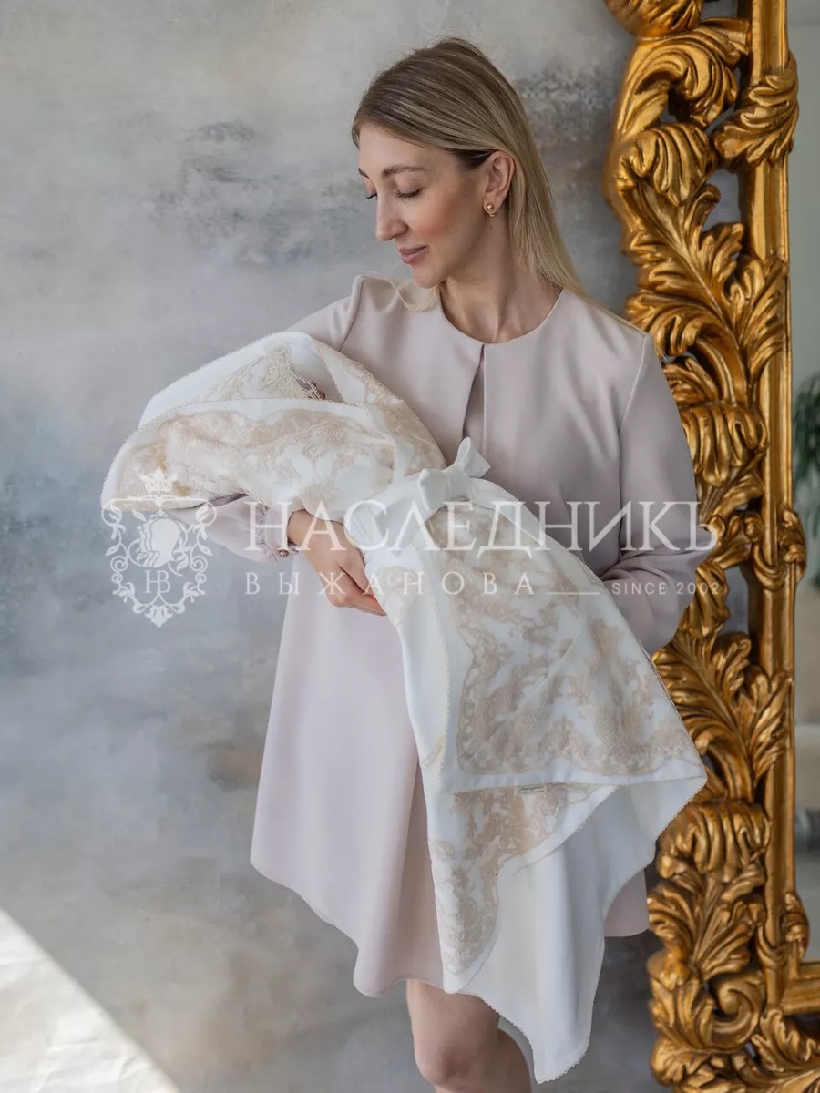 Конверт на выписку НаследникЪ Выжанова Рококо плед с поясом 95х95 см. экрю