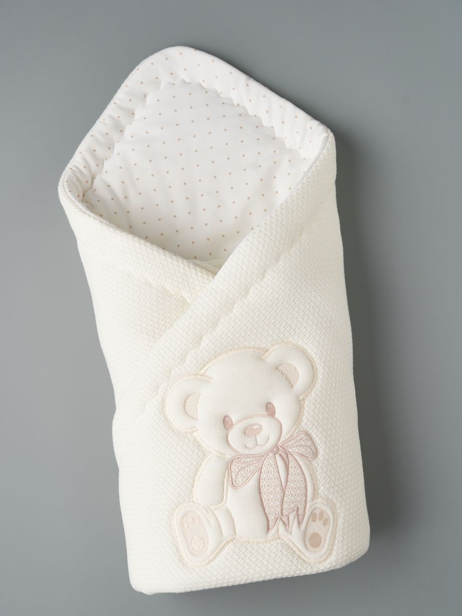 Конверт-одеяло Little Star на выписку вязаный весна-осень 31331 мишка бант, крем