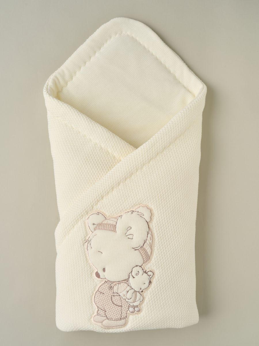 Конверт-одеяло на выписку вязаный весна-осень Little Star мишка малыш, кремовый