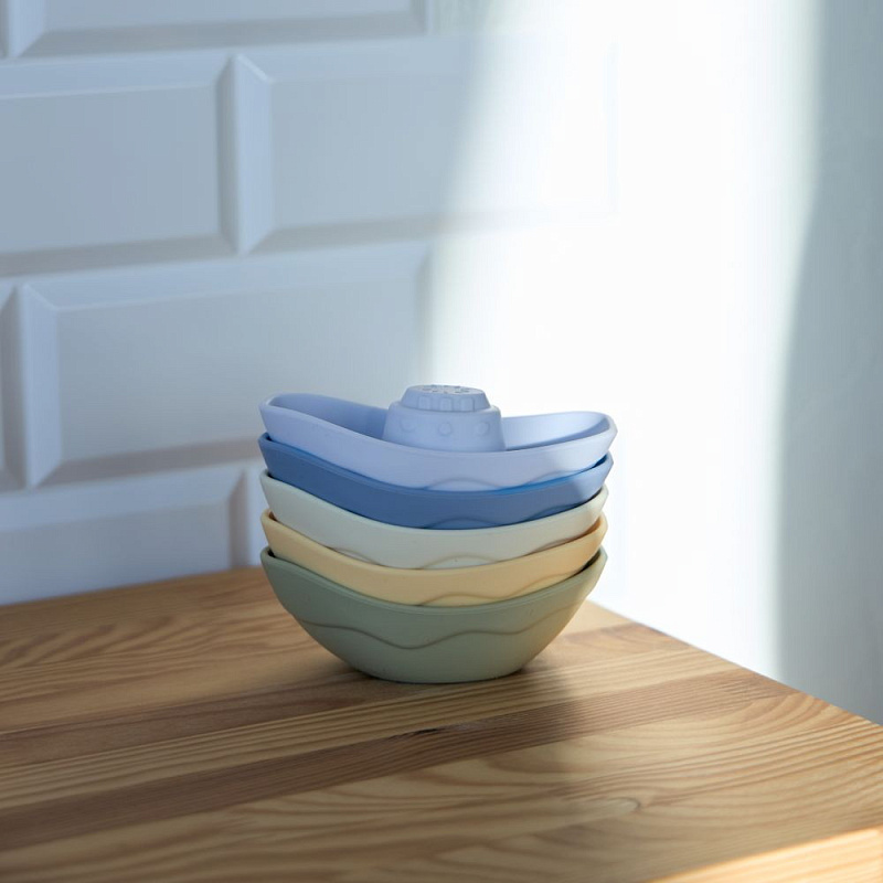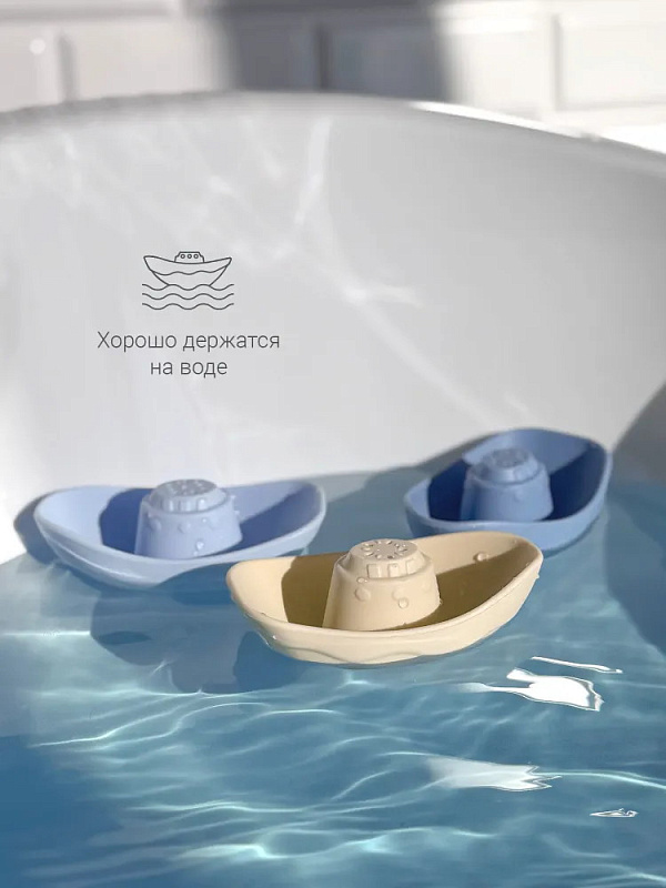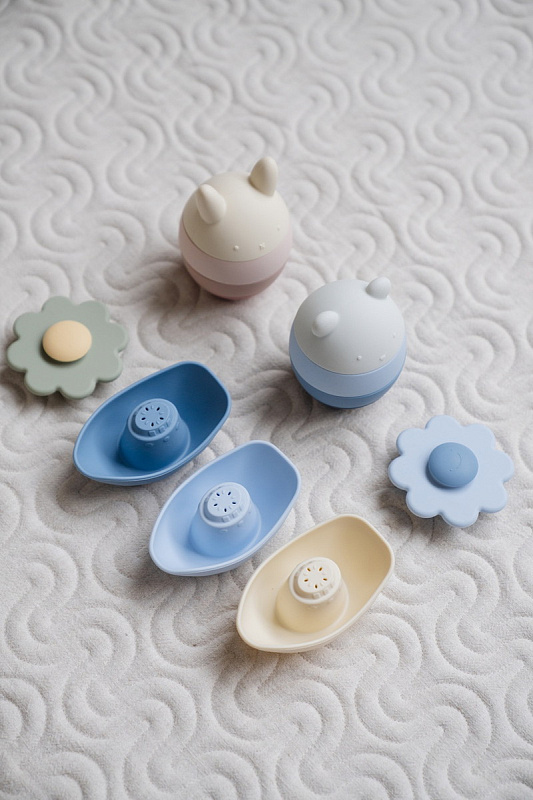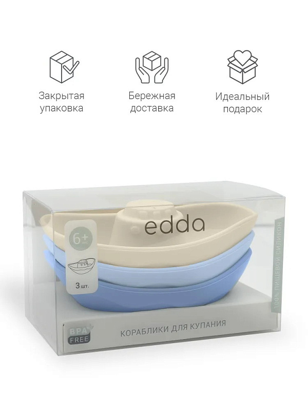 Поднять паруса! Кораблики edda отправляются в плаванье, а капитаном станет ваш малыш. Игрушки для игр в воде помогут ребёнку развить фантазию и мелкую моторику. В наборе — 3 кораблика, которые сделают каждое купание интереснее и веселее. Они хорошо держатся на воде, а в верхней части игрушек есть небольшие отверстия, через которые можно устраивать дождик. Больше идей для игр: из корабликов легко можно собрать пирамидку. Игрушки отвлекут малыша и избавят его от страха воды. Они выполнены из гипоаллергенного пищевого силикона без острых углов, поэтому абсолютно безопасны для младенцев и детей. Наборы представлены в нежных пастельных тонах, гармонично сочетающихся с коллекциями edda.