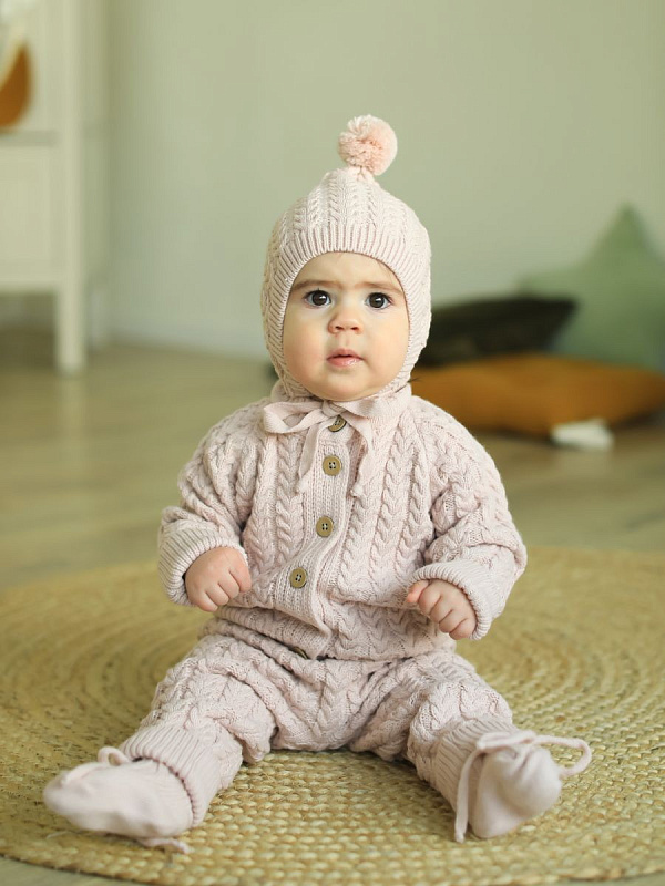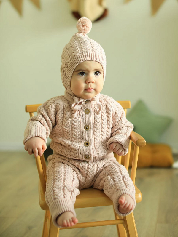 Детский вязаный костюм Little Star Косы – будет находкой для мамы в любое время года. Вязка детского комплекта выглядит стильно, имеет четкие линии швов и сгибов, благодаря чему комплект выглядит модным и повседневным. Натуральный хлопок в составе обеспечивает ткань отличными терморегулирующими свойствами, мягкой текстурой, хорошо дышит и сохраняет тепло.